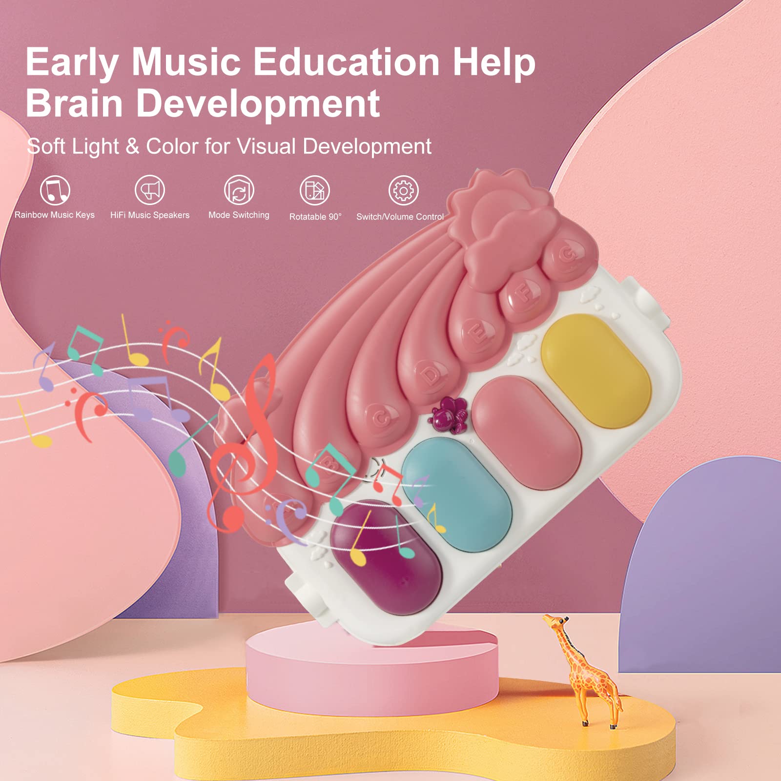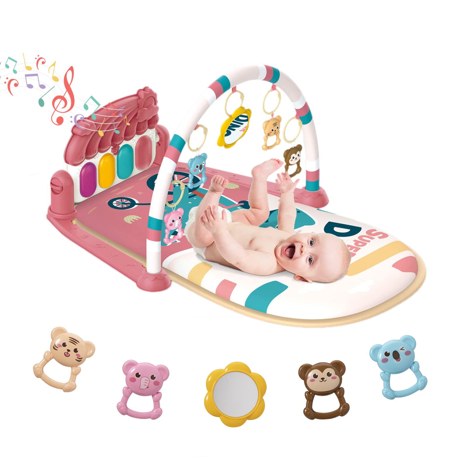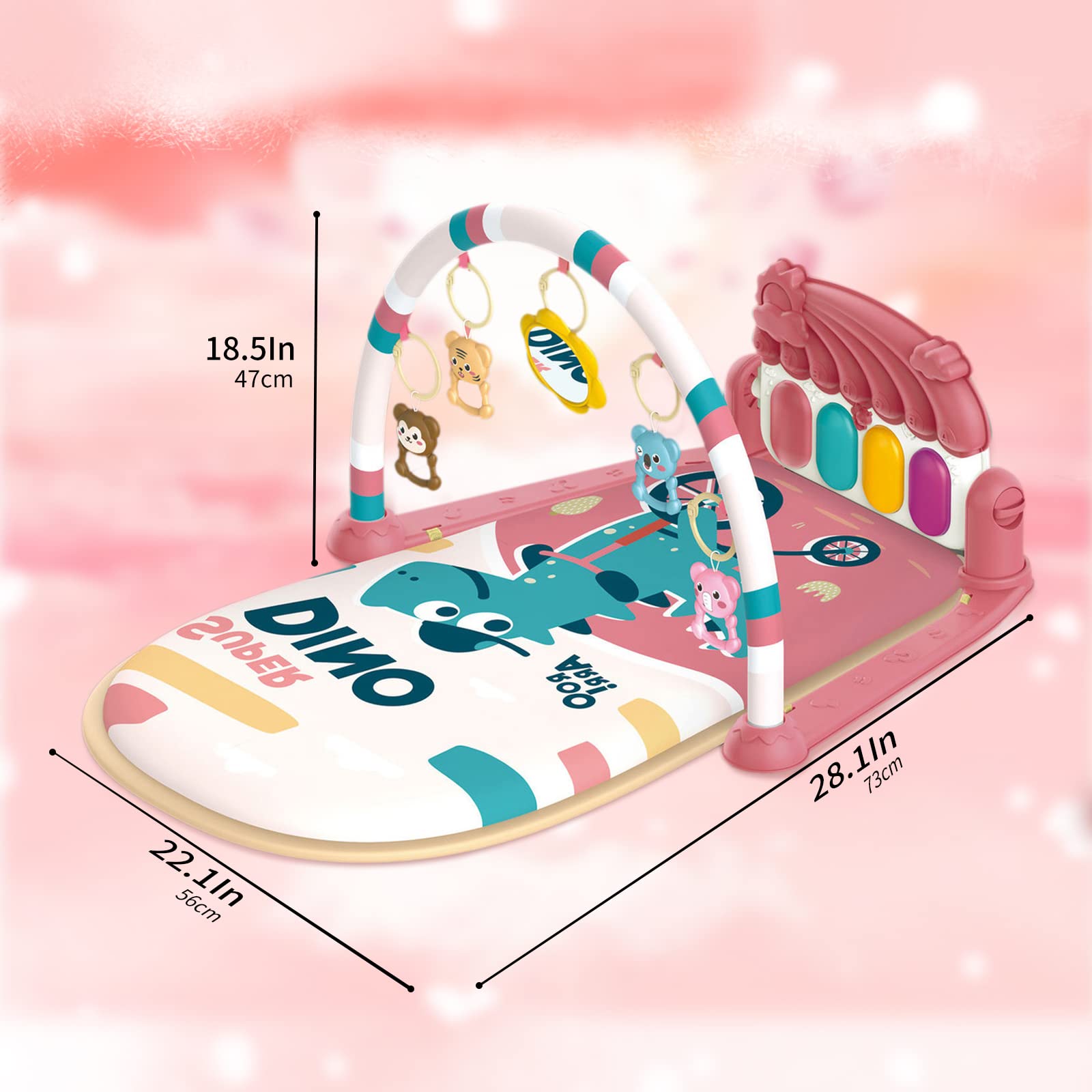dearlomum Baby Play Mat Baby Gym, Piano Tummy Time Baby Activity Gym Mat with 5 Infant Learning Sensory Baby Toys, Music and Lights Boy & Girl Gifts for Newborn Baby 0 to 3 6 9 12 Months(Pink)