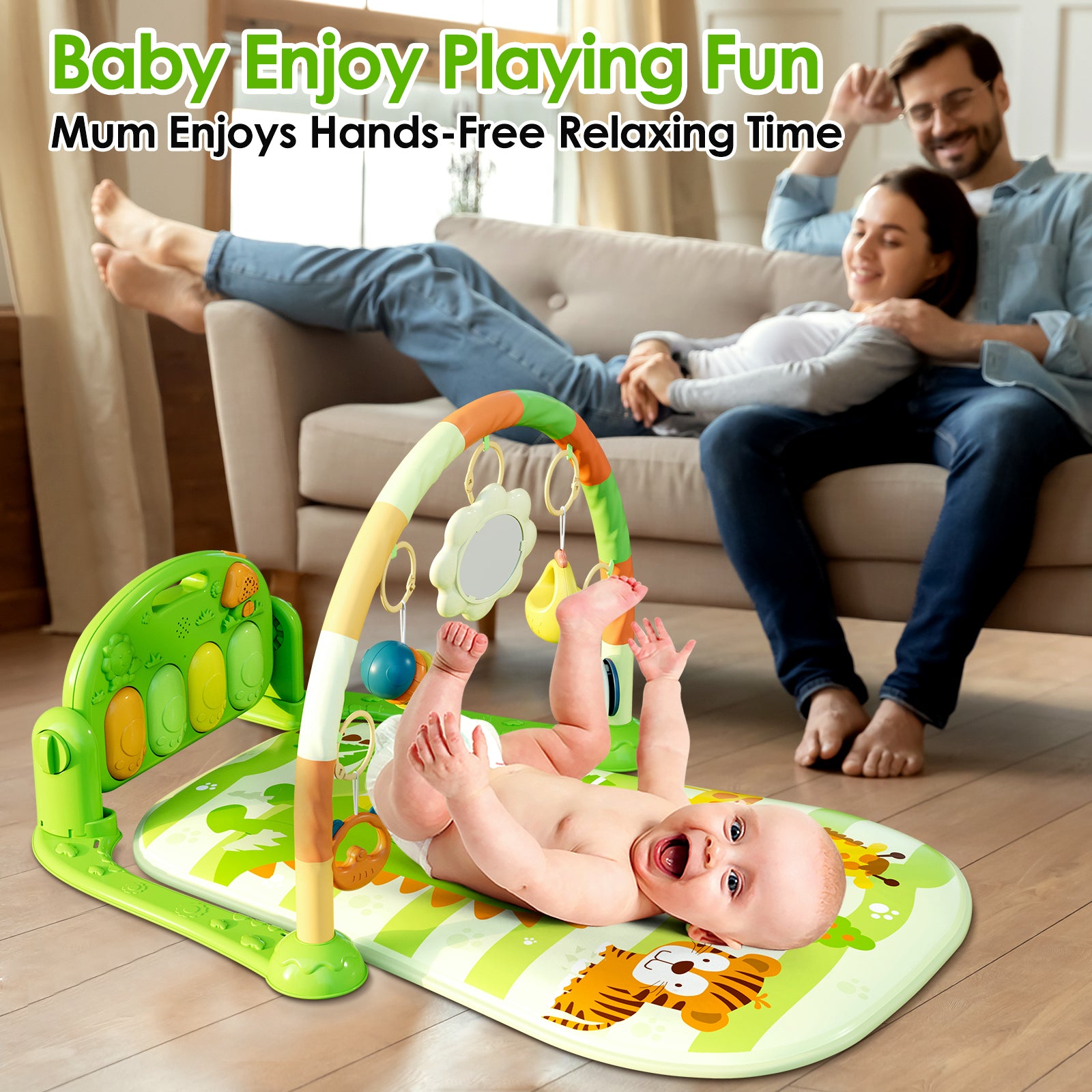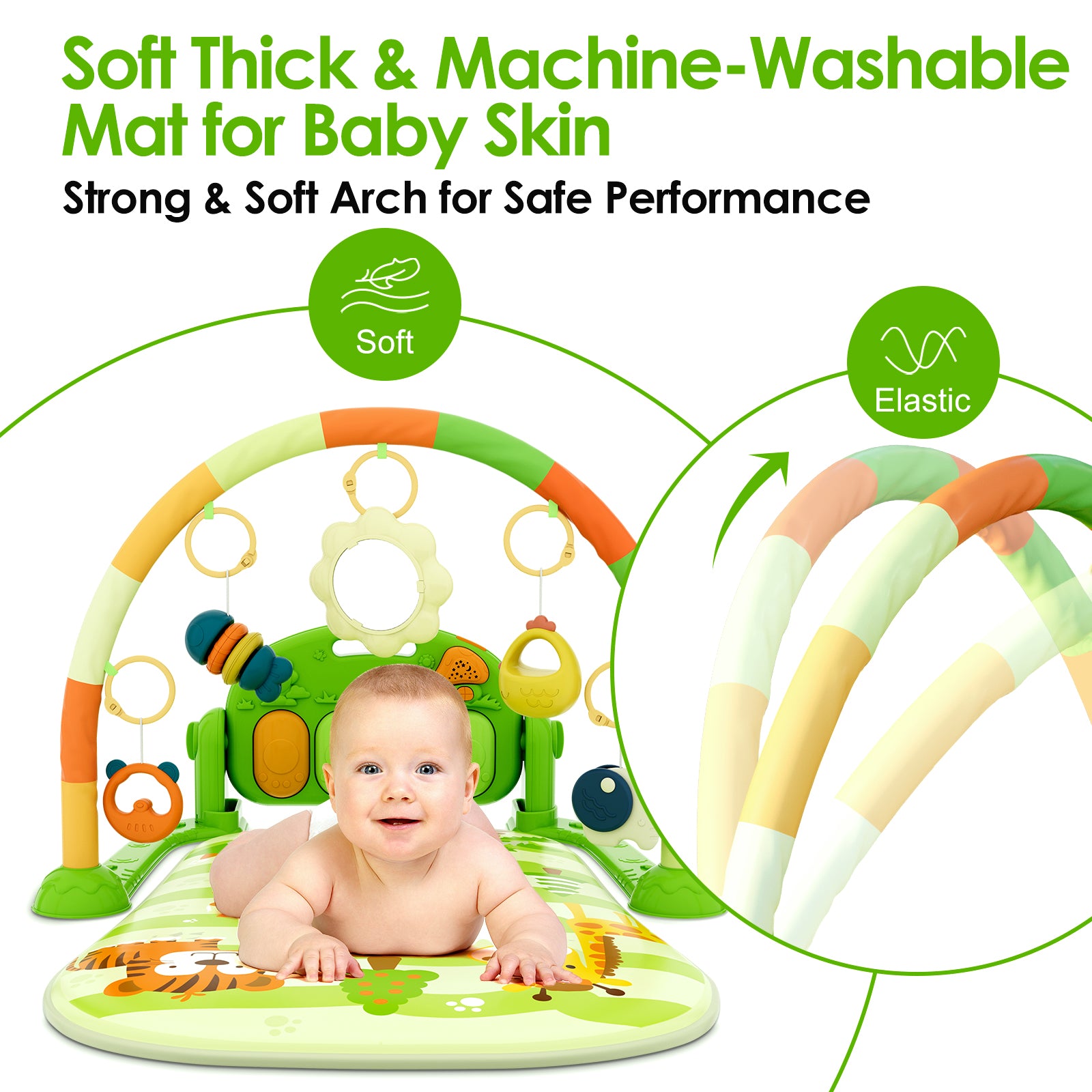 - 【Specially Designed for Babies】0-12 month baby brain development educational,The kick-activated piano is specially design for infant baby 0-12 months, its cheerful nursery music encourage baby to kick again and again. Baby play gyms encourage babies to use and develop the muscles in their arms, legs, tummy, back, and neck. It stimulates hand-eye coordination, fine & gross motor skills.