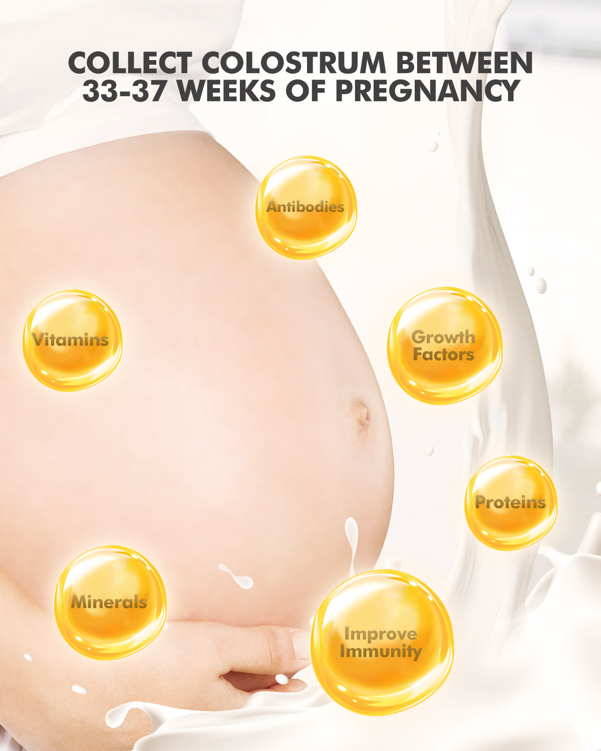 - About Colostrum:Colostrum is the milk produced around 33-37 weeks of pregnancy and in the first 3-5 days after birth. It is rich in immunoglobulins, growth factors, antibodies, and contains high levels of vitamins, minerals, and antioxidants.Newborns can easily absorb colostrum; it not only provides essential nutrition but also boosts the baby's immune system.